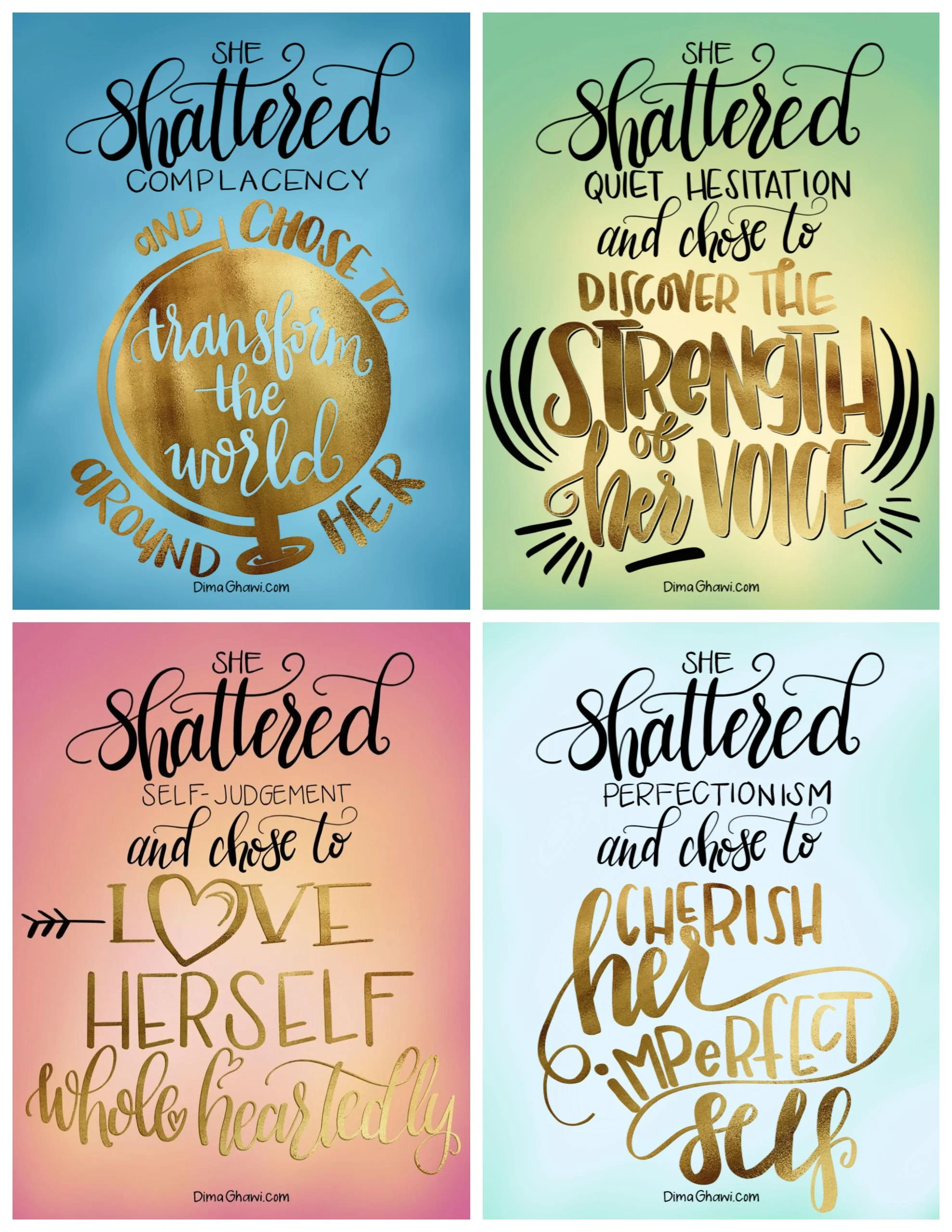 Purchase 3 posters from Dima's inspirational "She Shattered" series and receive the 4th for free.